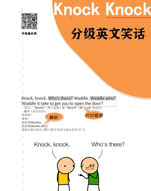 > 精选分级难度的Knock Knock英文笑话,带落地方案,激发孩子主动跟读。