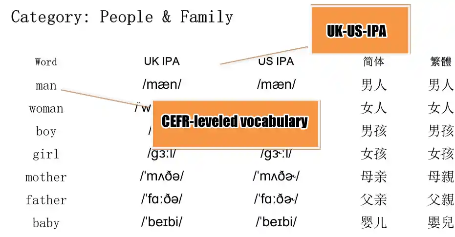 按照“难度、音标和重音”三个维度划分的词汇表,有助于大家更好地进行专项练习